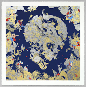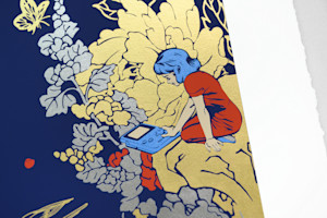 Detail of 24ct gold leaf, pure palladium leaf and spot varnish sparkle