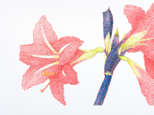 The artist's pointalism drawings were carefully separated in-house. Each tonal value was then translated onto screen to achieve a vivid reproduction.